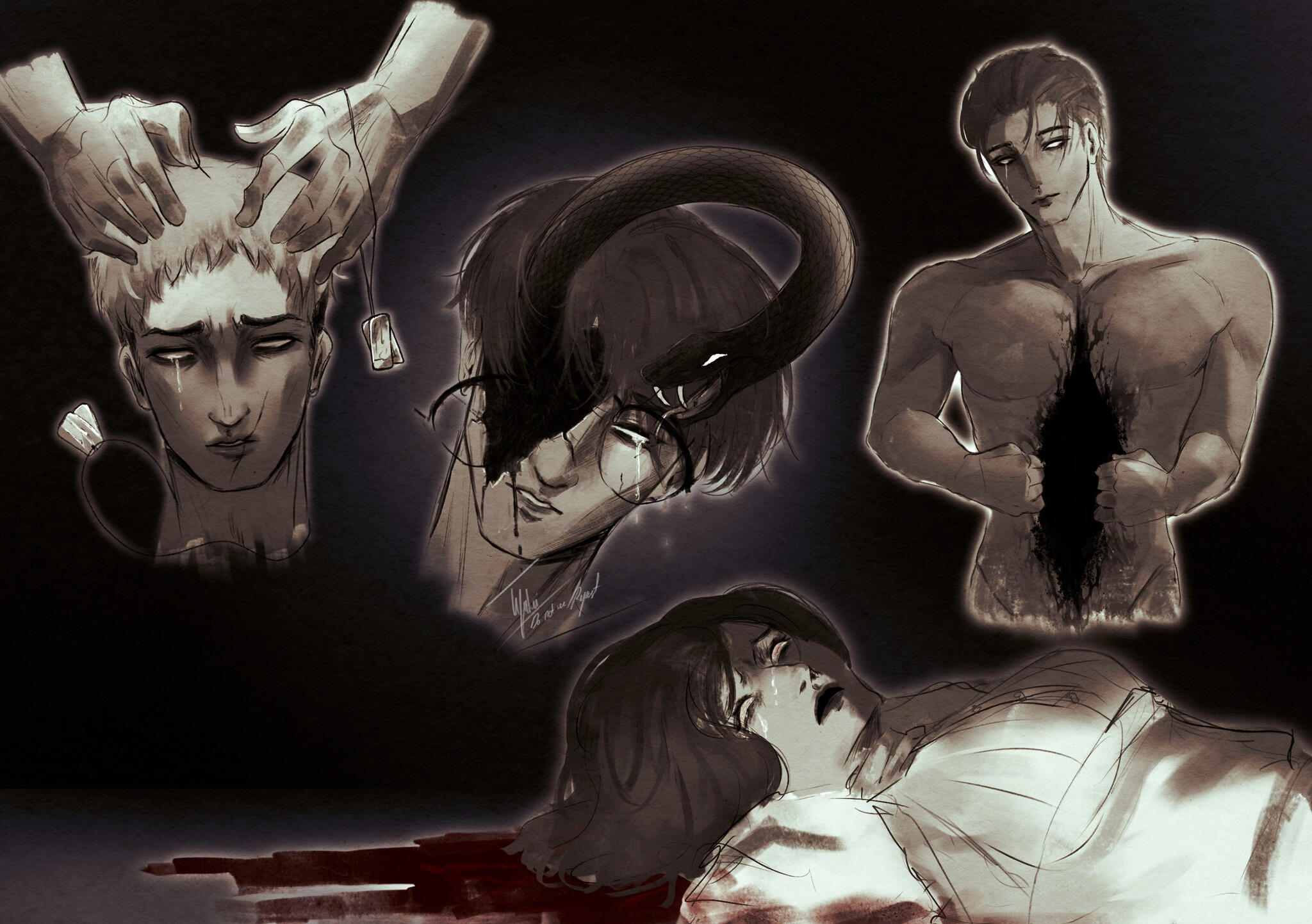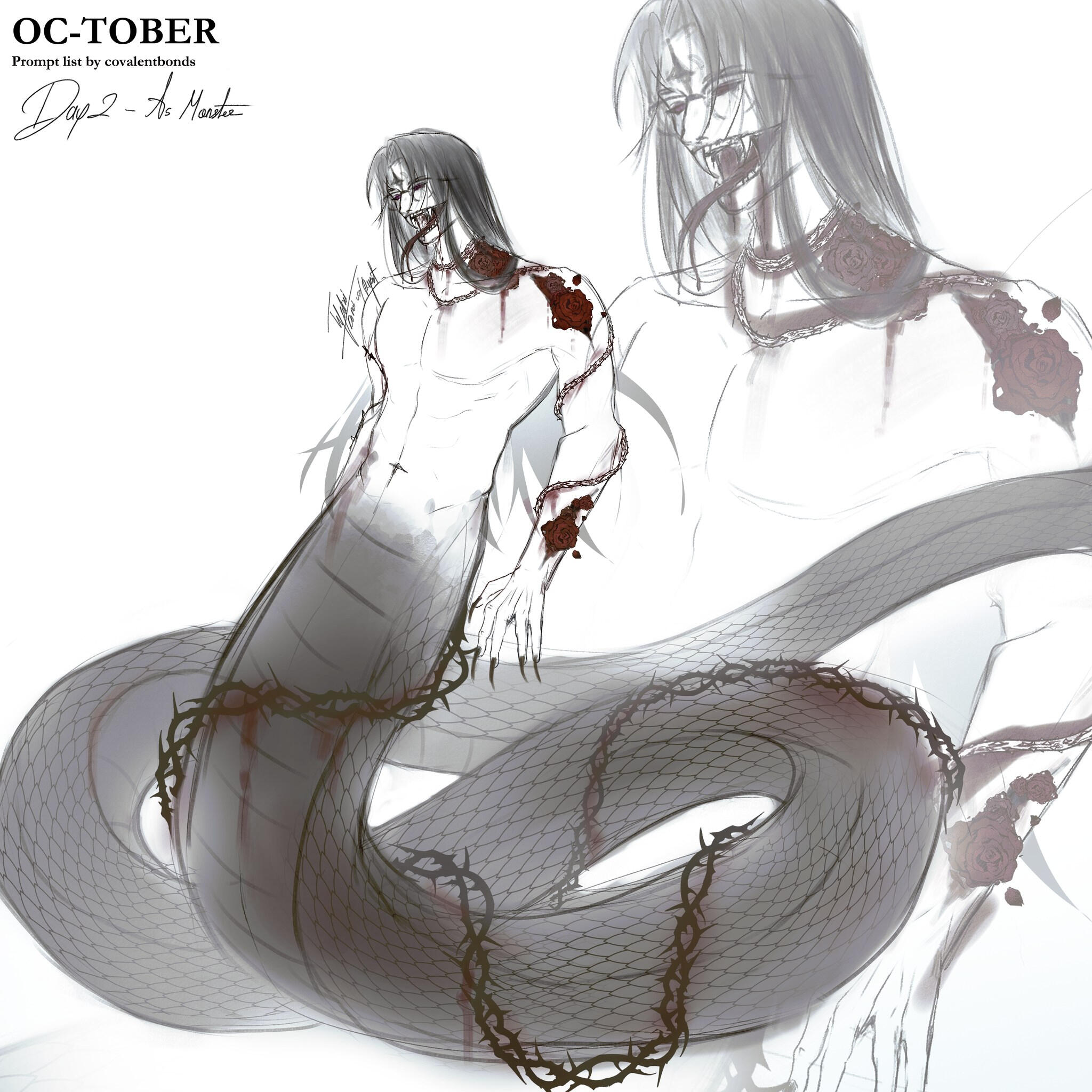 female/male character, OCTP, OC x canon (Yume) , creature, kemonomimi, fanart, soft gore/Blood